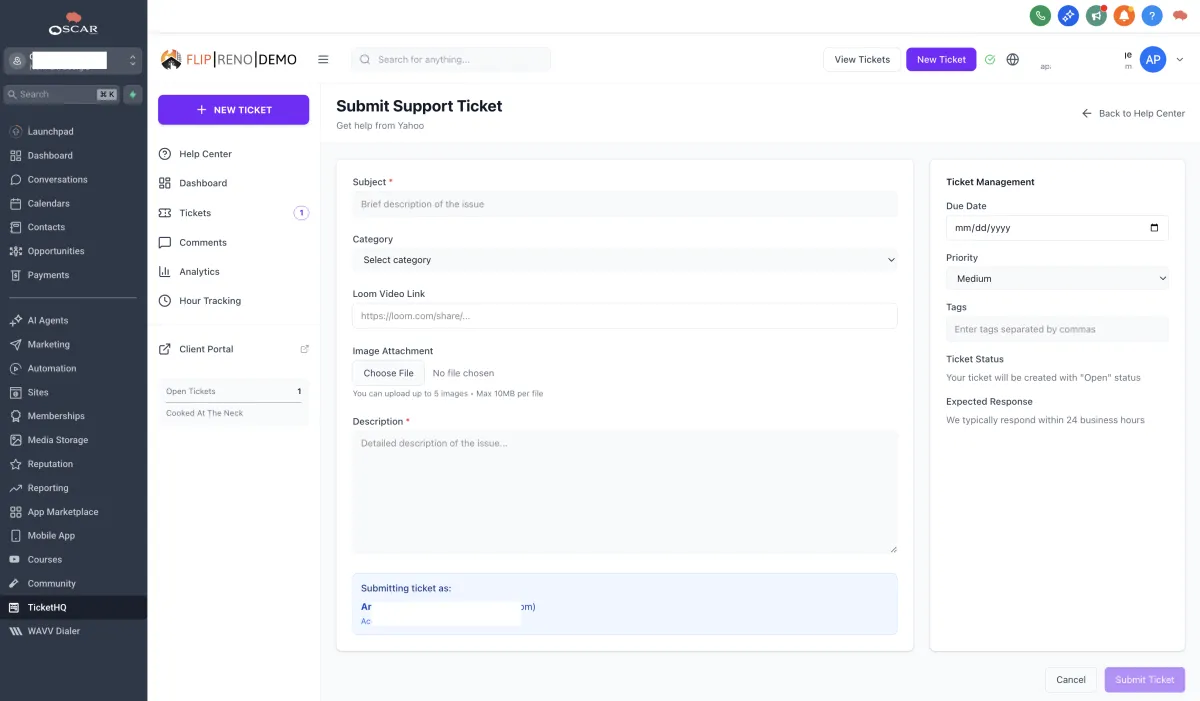 Professional Support Tickets That Live Inside GHL